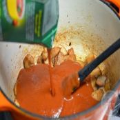 Na hora de servir, desligue o fogo e junte ao estrogonofe creme de leite fresco (caso não encontre, use o creme de leite de lata, nunca o de caixinha). O creme de leite fresco é o mais indicado porque não vai talhar o seu estrogonofe. Nunca use muito creme de leite. A proporção ideal é aquela que atinge um laranja claro.