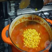 Uma lata inteira de milho em conserva (juntamente com sua água) - prefira o milho 'coração de manteiga' (vem escrito assim na lata) - é o mais macio.