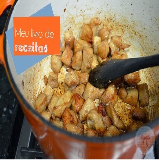 Jogue os cubos de peito de frango e grelhe-os até corarem, mas sem ressacá-los.