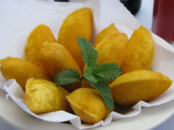 Abra a massa fazendo pequenas bolas e usando um rolo. Use forminhas que são adquiridas em lojas de artigos de plástico para cozinha. Recheie e frite em óleo bem quente.