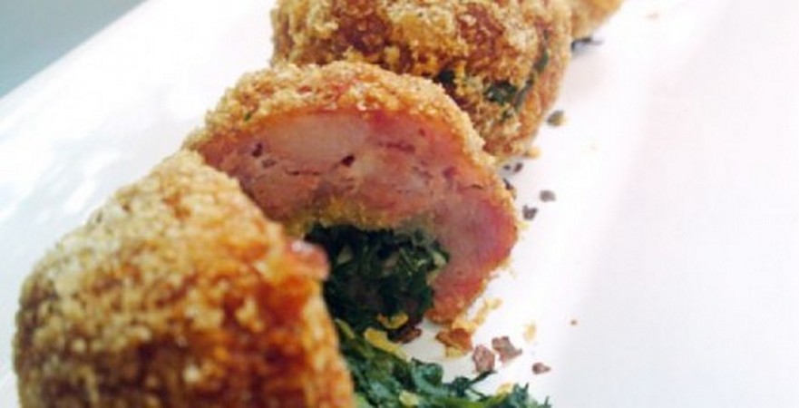 Passe cada bolinha de linguiça em 100g de farofa pronta. Frite as bolinhas em óleo quente até dourar. Retire do fogo e escorra sobre papel absorvente. Sirva em seguida acompanhado de pesto de couve.