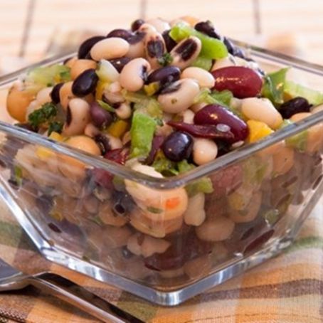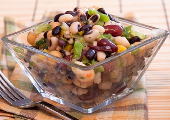 Molho: refogue o alho em 2 colheres (sopa) do azeite até murchar. Retire do fogo e tempere os grãos de feijão. Junte todos os ingredientes do molho e misture aos grãos de feijão.