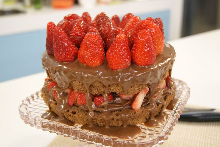 Bolo de Chocolate com Morangos