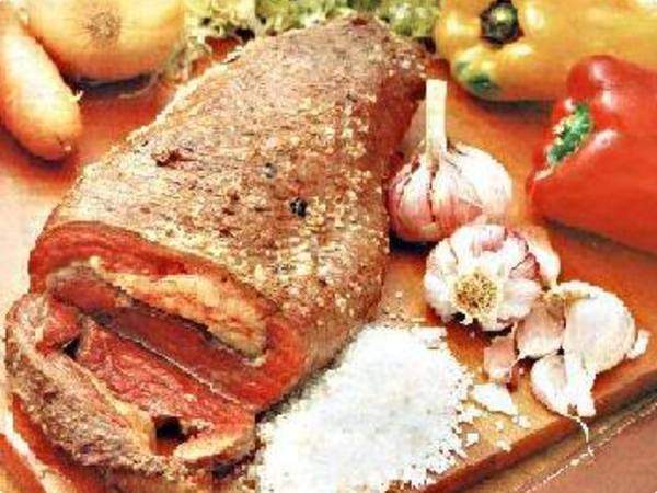 Retire o excesso de gordura da picanha. Fure a picanha na diagonal de um lado a outro, deixando 1 cm na lateral.