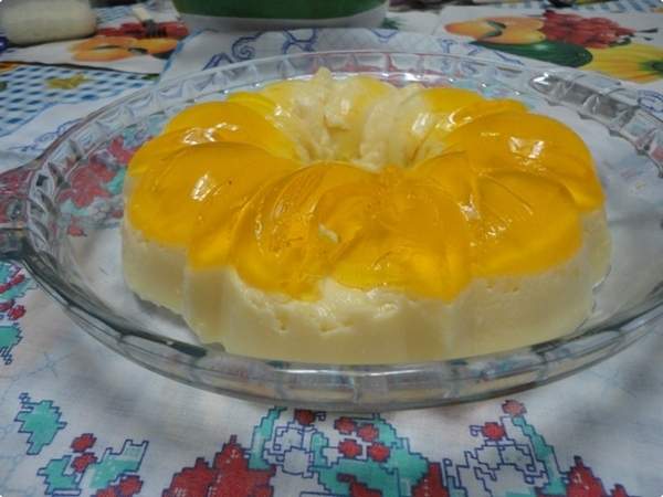 Despeje delicadamente sobre a gelatina que está na geladeira despeje com delicadeza leve de volta a geladeira para firmar