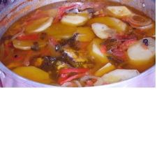 Por ultimo coloque os tomates, a cebola e o pimentão por cima da caldeirada, tampe a panela até que o peixe esteja completamente cozido.