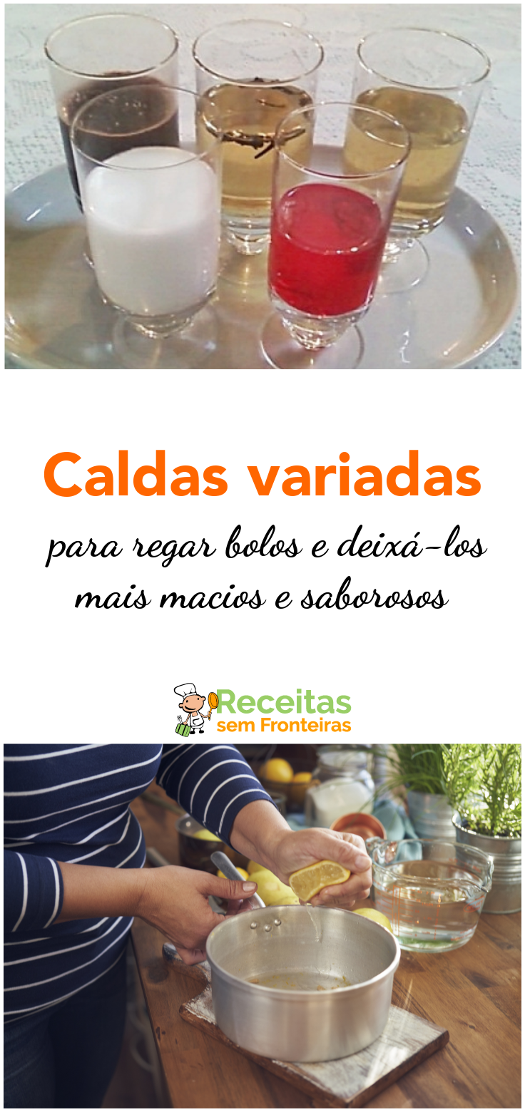 Estas caldas servem para regar os bolos durante a montagem e manter o bolo sempre úmido, mesmo guardado na geladeira, que sempre resseca os bolos.