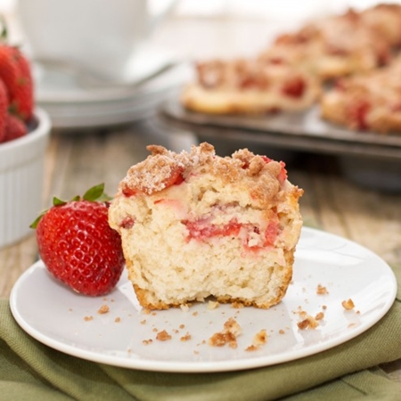 É natural que a maioria dos pedaços de morango "afundem" na massa do muffins. Uma opção prática, se quiser ter mais morangos na superfície, é cobrir os muffins (depois de assados e frios) com chantilly e acrescentar alguns pedacinhos de morangos.
