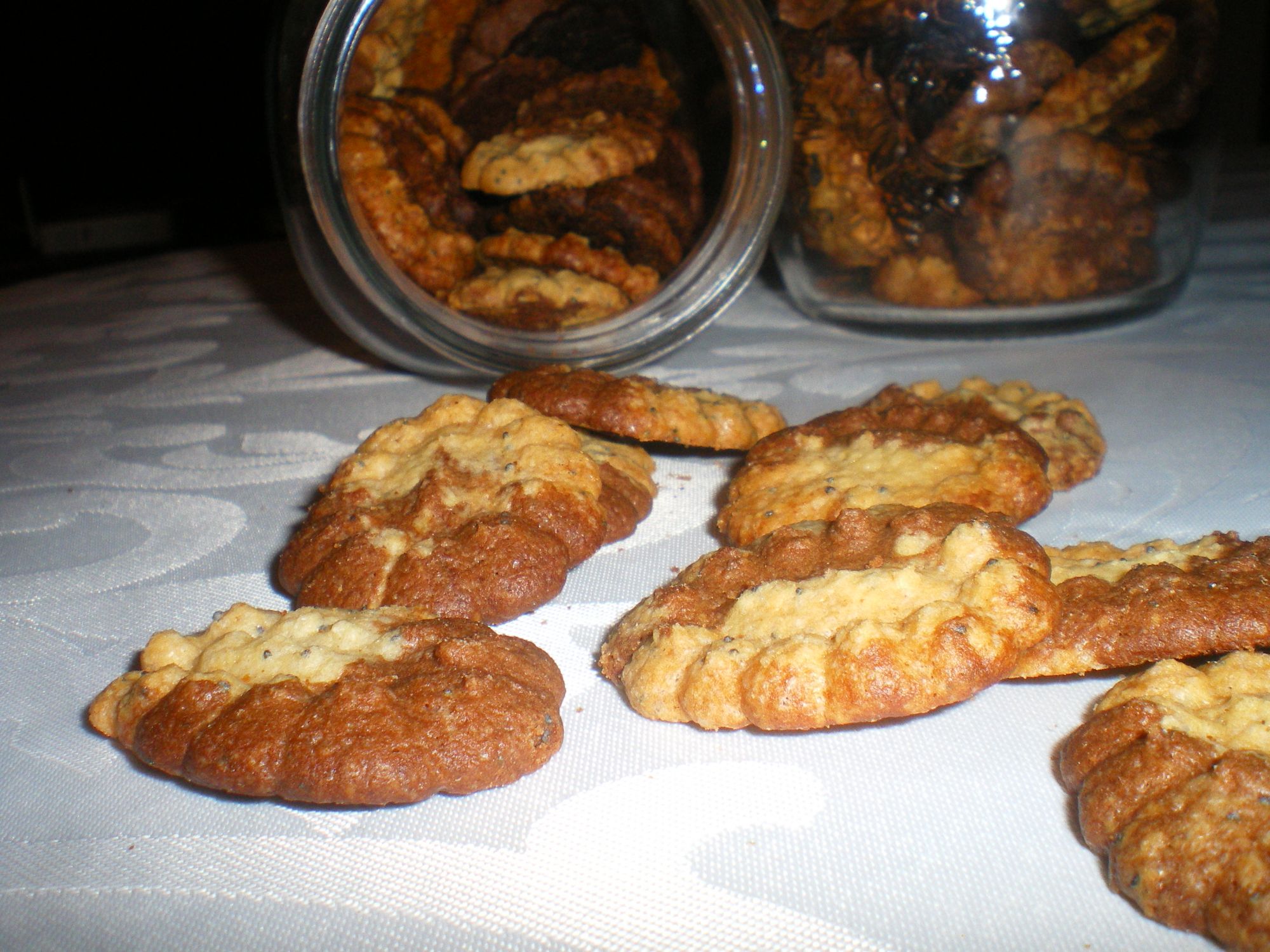 Uma das minhas paixões é inventar na cozinha. Se me derem uma receita não é fácil que eu a siga à risca, e normalmente acabo sempre por acrescentar ou retirar algo. Estas bolachinhas foram criadas assim: fui ver o que tinha na dispensa e vi que havia um pouco de chocolate em barra de culinária para ser usado (para quem conhece tinha 3 barras de uma tablete pantagruel) e lembrei-me de fazer umas bolachinhas de duas cores.