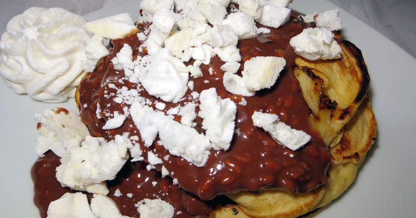 Panquecas de banana com chocolate e suspiros
