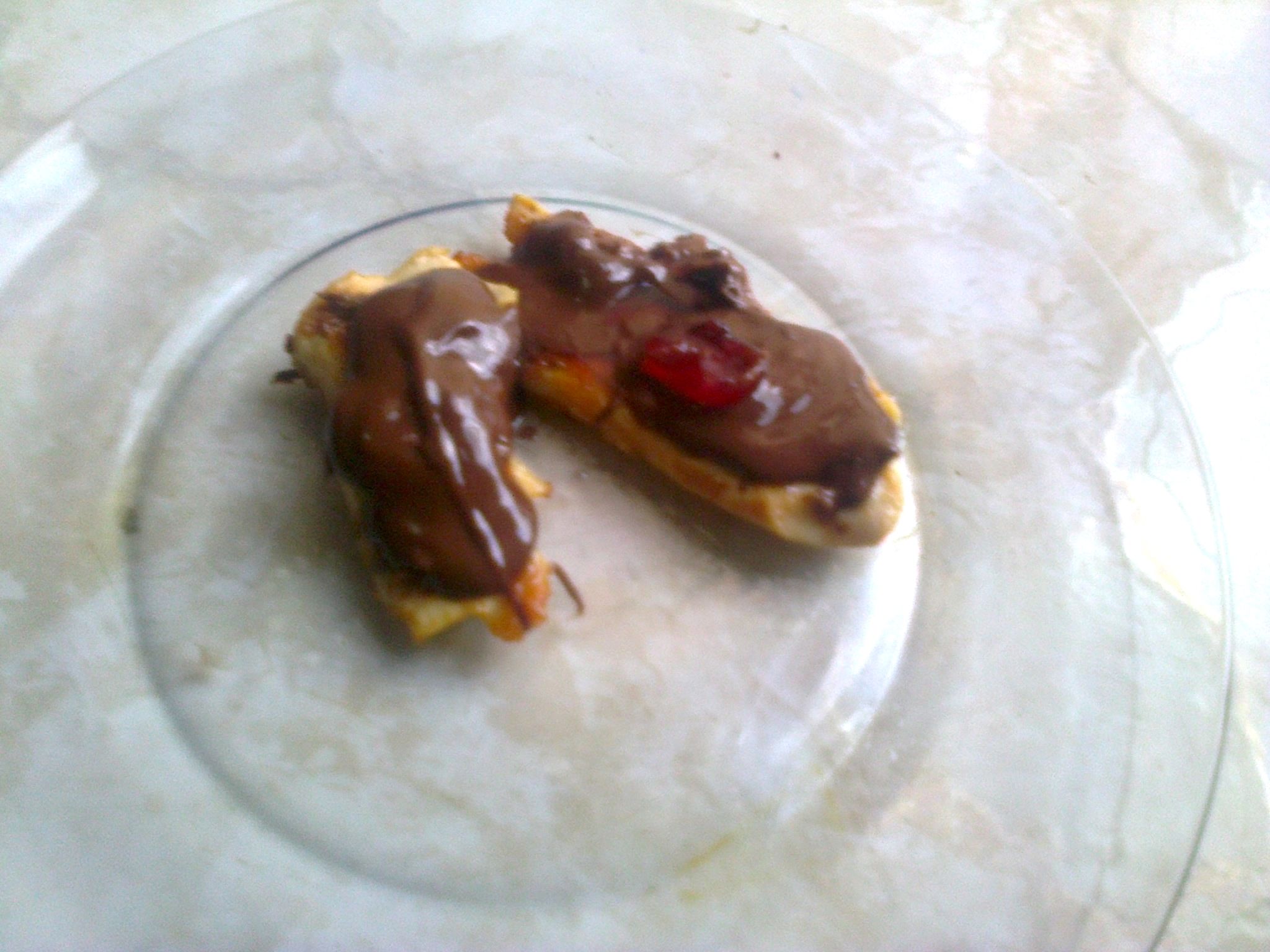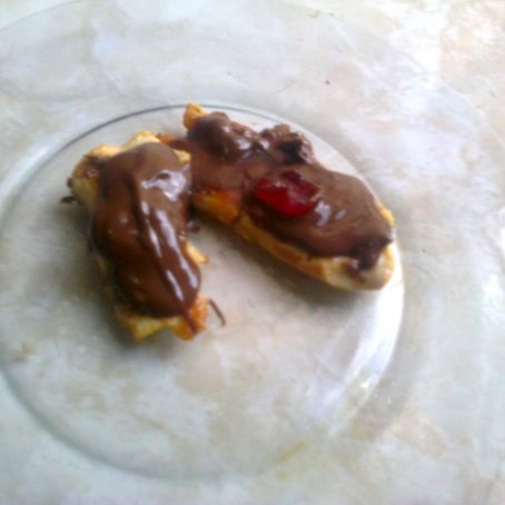 Em um refratário, coloque os filés separadamente, e espalhe por cima o chocolate com cereja. Sirva ainda quente.