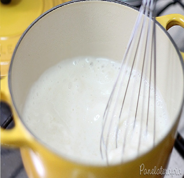 Depois que você desligar o fogo ele vai engrossar cada vez mais, por isso se você notar que ficou muito espesso, é só acrescentar mais leite comum (não precisa estar aromatizado) e mexer fora do fogo mesmo até atingir a consistência ideal.