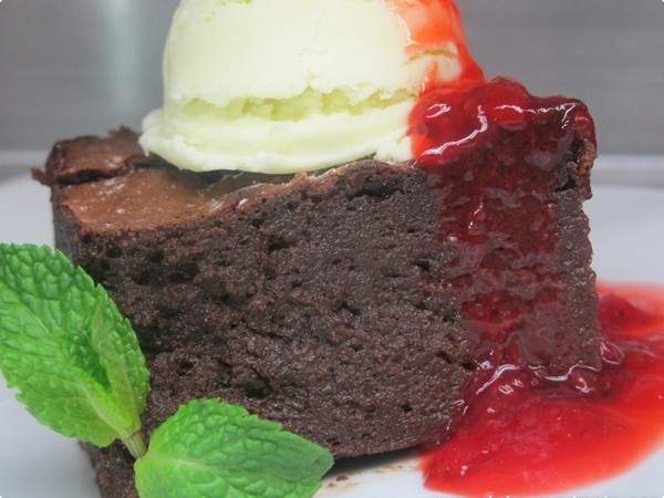 3 - Num refratário quadrado (20 cm) despeje a mistura de chocolate e leve ao forno médio pré-aquecido a 180°C por +/- 45 minutos. Retire do forno e sirva em seguida.