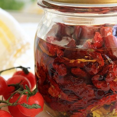 Num prato grande, disponha os tomates com a pele voltada para baixo.