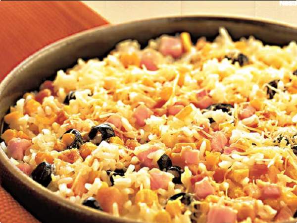 Coloque uma camada de arroz e cubra com um pouco do molho