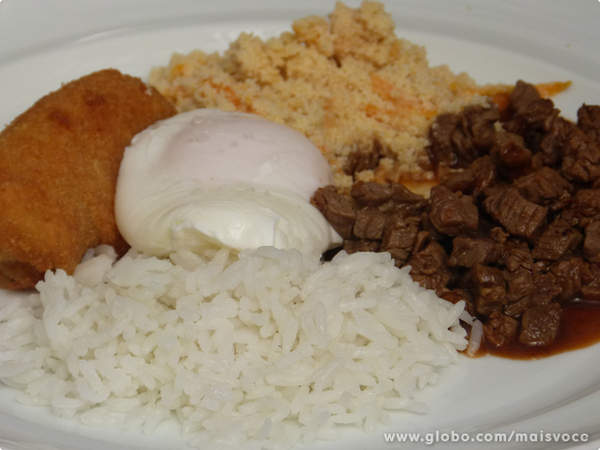 Sirva acompanhado de arroz branco, farofinha de cenoura e banana à milanesa.