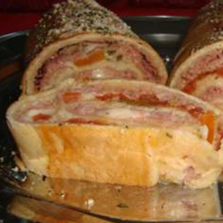 Pizza enrolada com recheio misto