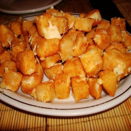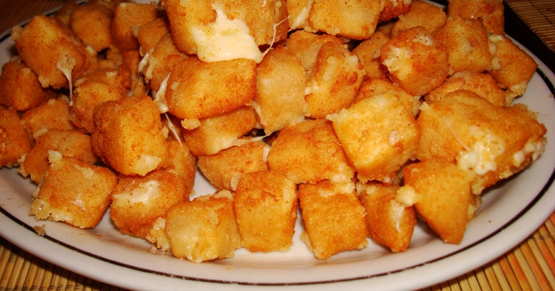 Passe o provolone no ovo batido, na farinha de trigo, no ovo e novamente na farinha.
