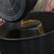 Em seguida, forre uma forma redonda (26 cm) com a calda. Reserve.
