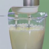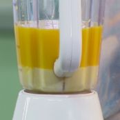 Reduza a velocidade da batedeira e despeje o suco de laranja aos poucos. Misture bem e desligue.