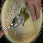 Depois, some a farinha, o fermento e as raspas de laranja. Mexa delicadamente.