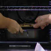 Em seguida, coloque a assadeira dentro de outra assadeira retangular com água. Leve ao forno preaquecido a 180°C por cerca de 1 hora e meia.