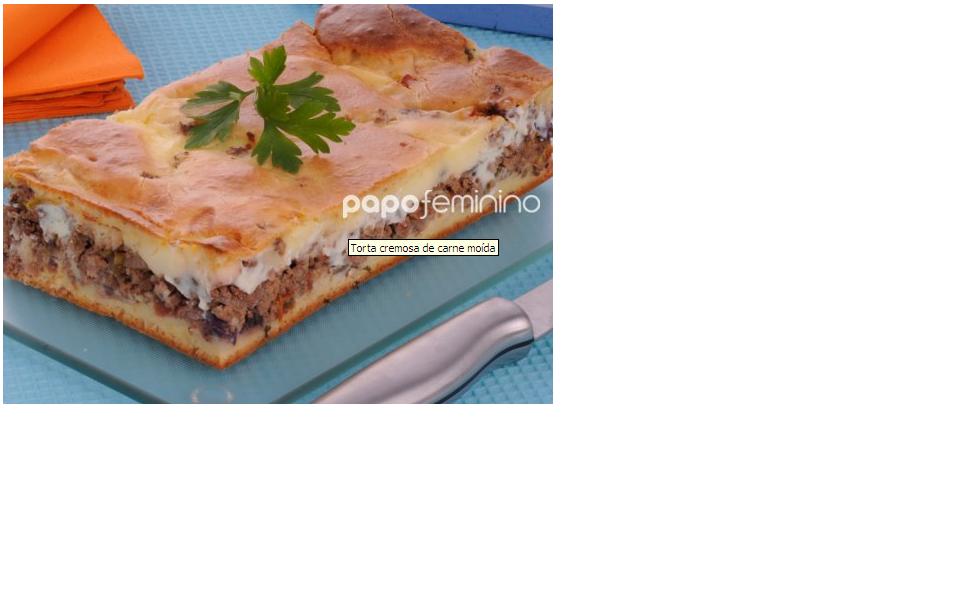 Coloque na assadeira untada e enfarinhada metade da massa, carne moída, presunto, mussarela, e a outra parte da massa e tomate em fatia para decorar. 30 minutos no forno.