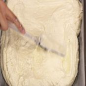Desligue a batedeira e acrescente por último as claras em neve e o fermento em pó. Passe a massa para um forma retangular de aproximadamente 40 cm untada e leve ao forno preaquecido a 180°C por 20 min.