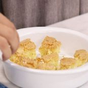 Deixe esfriar a massa, desenforme e leve ao freezer por aproximadamente 15 minutos para ficar mais fácil de banhar na calda.