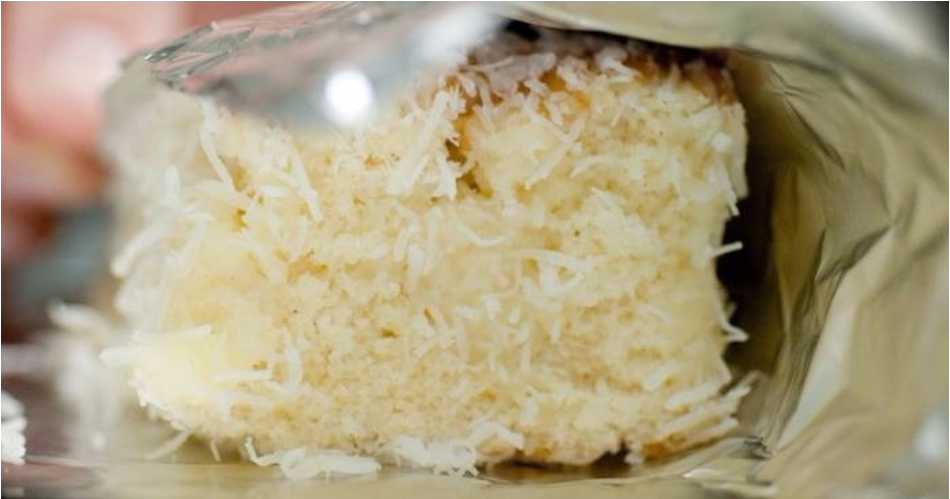 Mistura o leite condensado e o leite de coco em uma vasilha e o coco ralado em outra. Corte pedaços de aproximadamente 5 cm de bolo e molhe na calda de leite condensado e leite de coco, e passe no coco ralado. Repita o procedimento em todos os bolinhos, embrulhe em seguida no papel de trufa e leve a geladeira até ficar bem gelado.