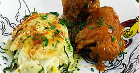 Frango de panela com escondidinho de Ora-pro-nobis Fricassé de frango