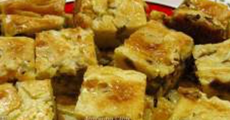 Unte a assadeira com óleo e a farinha de trigo, despeje a massa e por cima o recheio