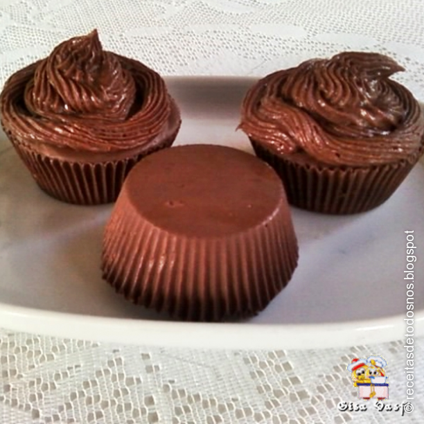 Você pode servir só o bombonzão ou pode colocar ganache ou chantilly de chocolate ou buttercream (glacê de manteiga) de chocolate, formando um cupcake.