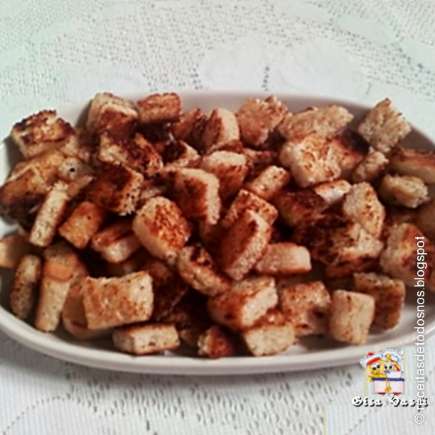 Deixe os croutons esfriarem e guarde em potes bem fechados.