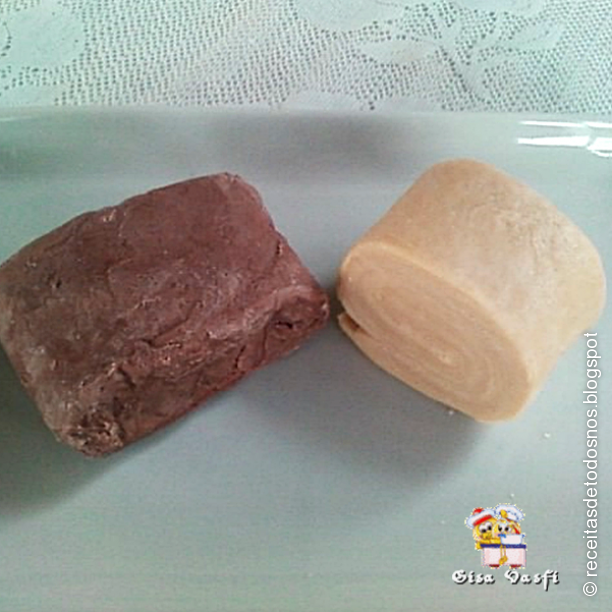 Faça uma bola e enrole a massa em filme plástico e leve à geladeira por meia hora.