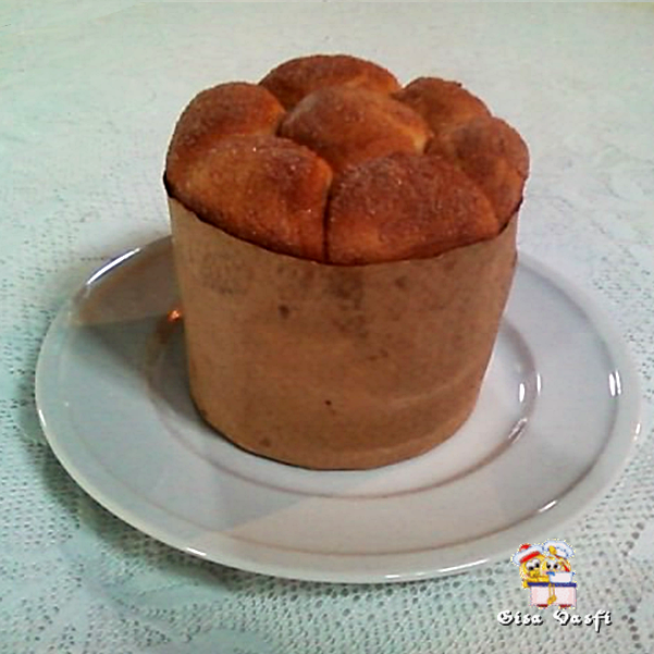 Monte o pão em formas de pudim, formas redondas desmontaveis ou formas de papel kraft descatráveis, destas proprias para panetone ou bolos.