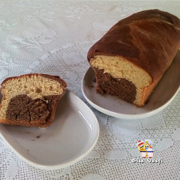 2- Dobre a massa branca sobre a de chocolate e termine de enrolar, fazendo um rocambole.