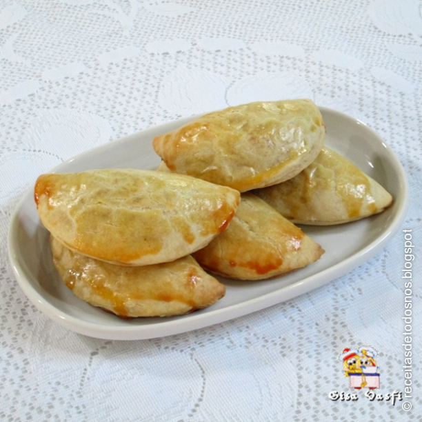 Coloque uma porção do recheio em metade do disco e cubra-o com a outra metade, dobrando-a.