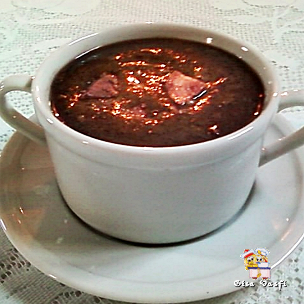 Para o caldinho de feijão eu não acrescentei nem a abóbora, nem a massinha de letrinhas.