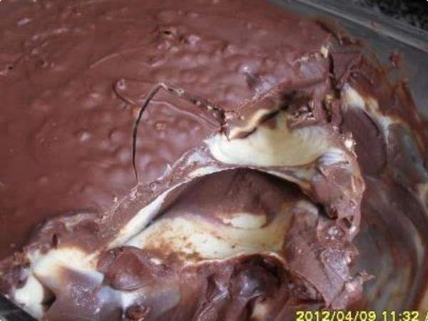 Separe 1/3 dessa mistura e no restante coloque o chocolate meio amargo derretido e ficará um creme escuro