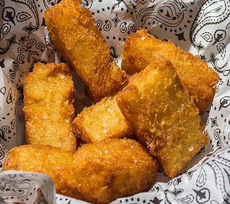 Cozinhar a mandioca em panela de pressão até ficar muito macia, mas sem desmanchar.
