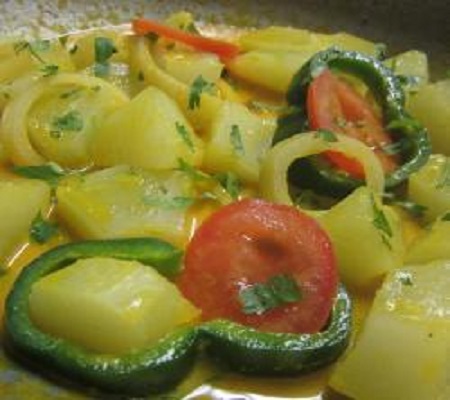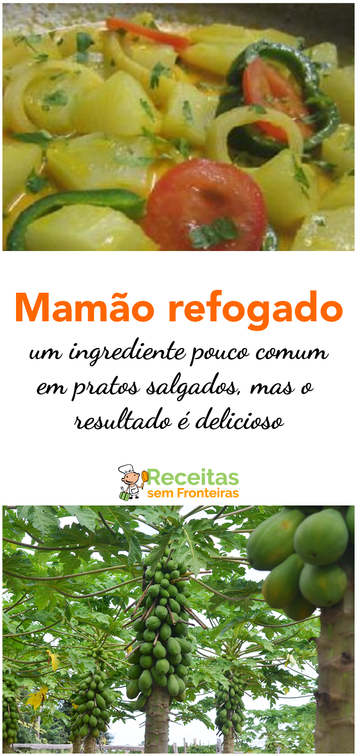 Coloque uma panela no fogo com o azeite, a cebola e o restante dos temperos para refogar por cerca de 2 minutos, acrescente o mamão, o tomate e o pimentão e refogue até ficar macio.
