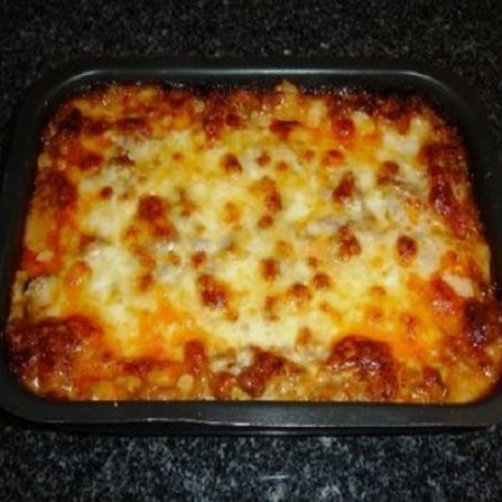 Por último uma camada de presunto, uma de queijo mussarela e o resto do molho vermelho.