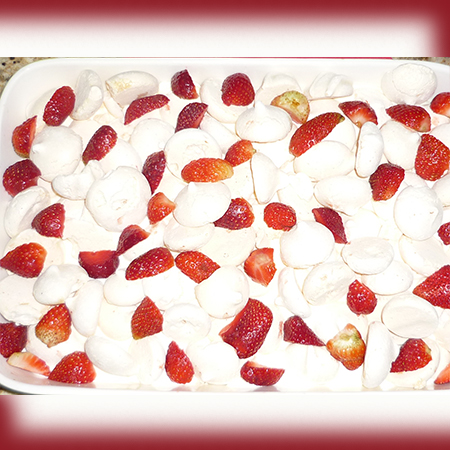 Em um Recipiente coloque o morango, o suspiro e o creme de leite, misture tudo.
