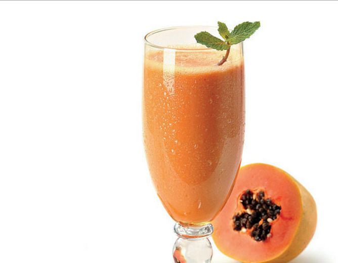 Corte o mamão em pedacinhos e coloque em um liquidificador.