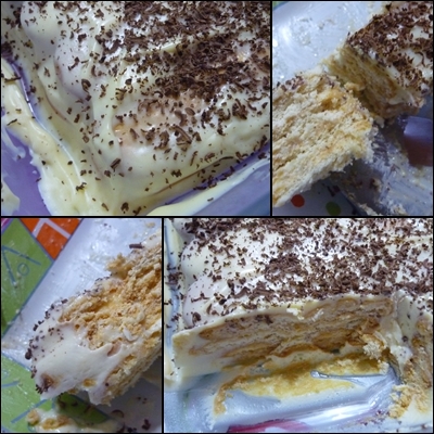 Em seguida, molhe as bolachas (rapidamente) e faça uma camada sobre uma travessa de sua preferencia