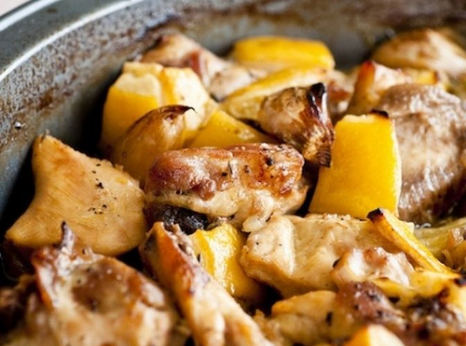 - 4 filés de peito de frango - cortados em pedaços pequenos