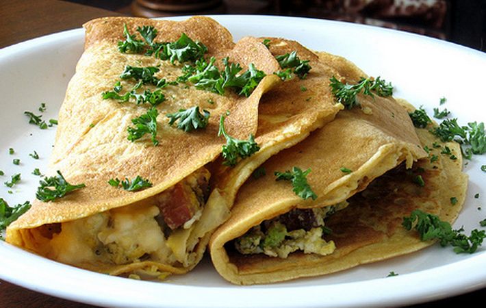 Em fogo médio, aqueça uma frigideira grande untada levemente com óleo ou manteiga. Coloque 4 colheres de sopa da massa na frigideira e gire-a para que a massa se espalhe, formando uma camada bem fina, Quando o crepe começar a borbulhar, vire-o. Quando o crepe estiver totalmente cozido, retire-o da frigideira e repita o mesmo processo com a massa restante.