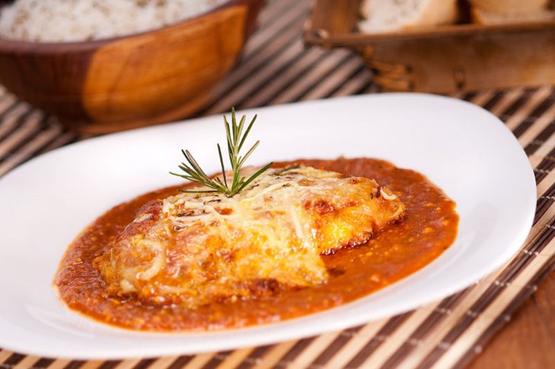 Depois de fritos coloque-os em um molho de tomate coberto com queijo.