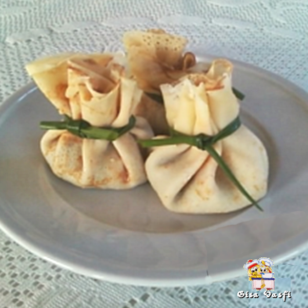 Coloque uma colher, das de sobremesa, de recheio em cada panqueca e feche como uma trouxinha.